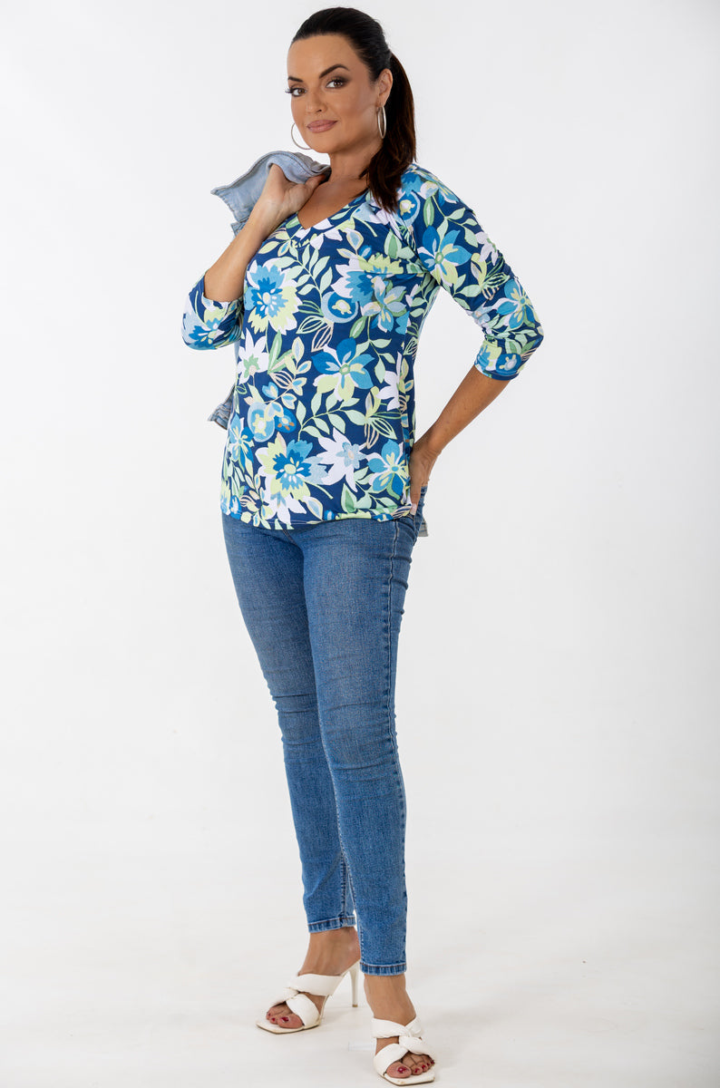 Upgrade your everyday style with our 3/4 Sleeve Knit T-Shirt featuring a flattering V-neck in ultra-soft brushed DTY fabric. Designed in our signature Blooms Print, this tee blends comfort with effortless style—perfect for casual days or easy layering. Lightweight, breathable, and beautifully draped, it’s your new go-to for all-season wear. Shop now and add a touch of floral elegance to your wardrobe.