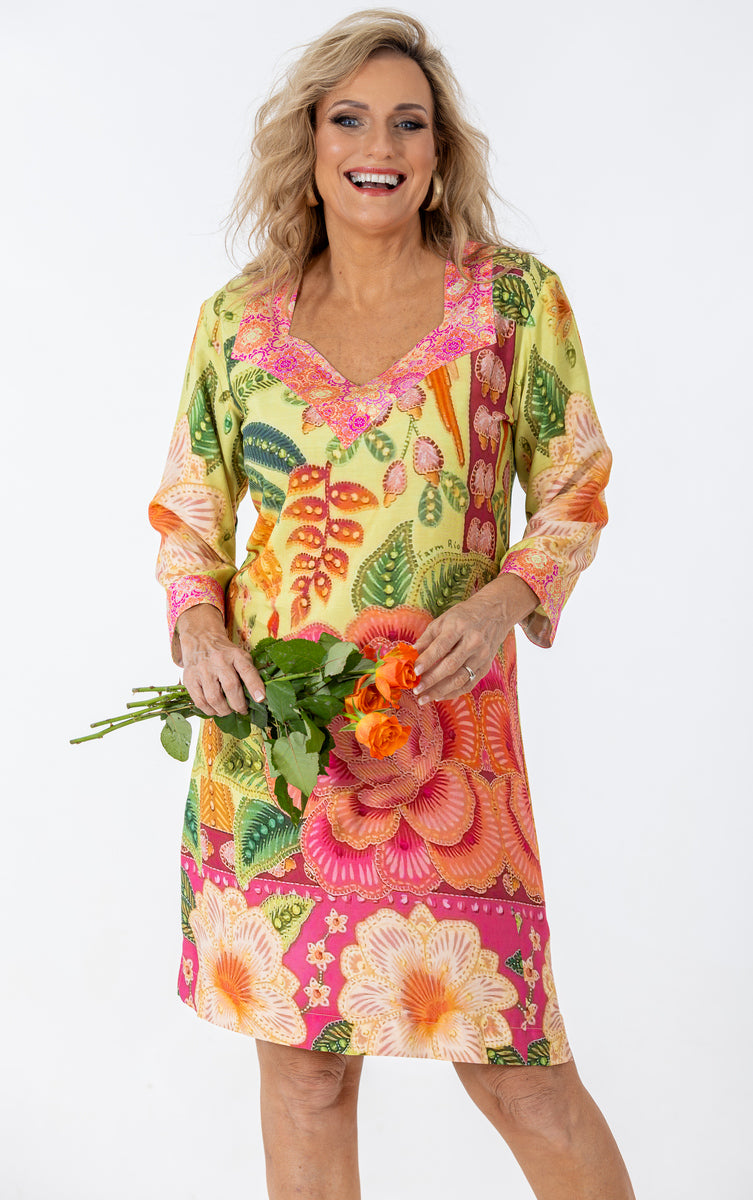 Turn heads with this stunning Contrast Midi Shift dress, featuring a chic neckline detail for a funky touch. Made from premium locally printed viscose, the fabric is soft, breathable, and moves beautifully with your body!