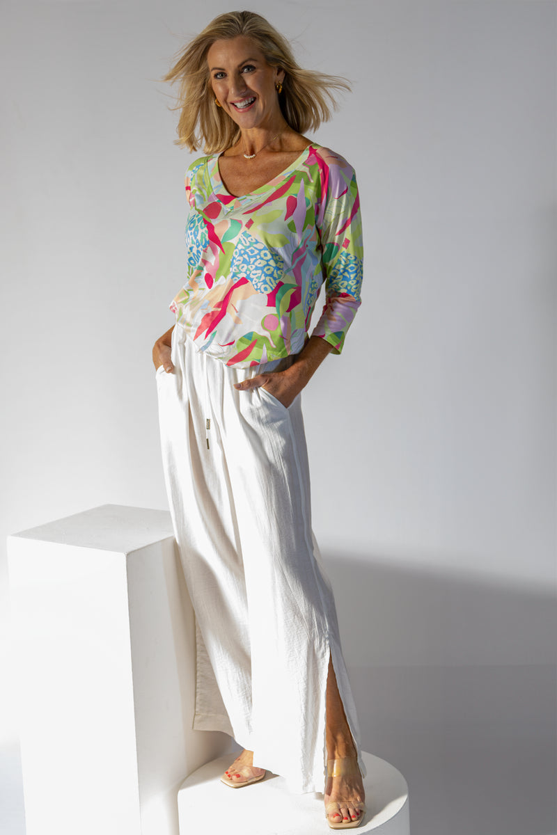 | Paradise awaits! Take a good long look at our Linen Trousers. All crafted in a fabulously fluid Linen to showcase a superb depth of colour. A wide straight leg silhouette is cleverly cut to flatter. Along with handy side pockets, and side hem slits creating a relaxed easy to wear long pant. But there's more... a wide elasticated waistband, and drawstring for comfort. We think you will agree... Every day is a sunshine day with these trendsetting trousers. Plain Dye Linen Side Front pockets Waist elasticating Drawstring detail Side Seam Hem Slits Cool Machine wash – Do not tumble dry |